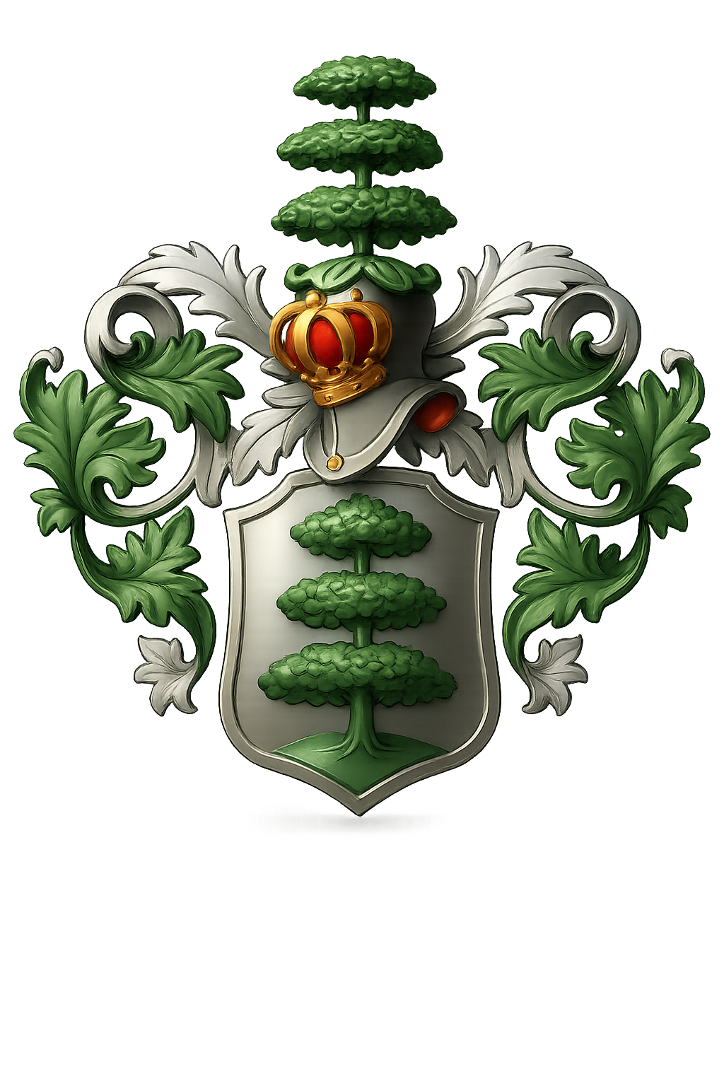 In het midden is een wapenschild te onderscheiden, met een iets andere boom dan veelal gezien wordt op de zegelringen, en ook op de afbeelding in het stam en wapenboek van Van Ooijen (LET OP: geen 3 etages).