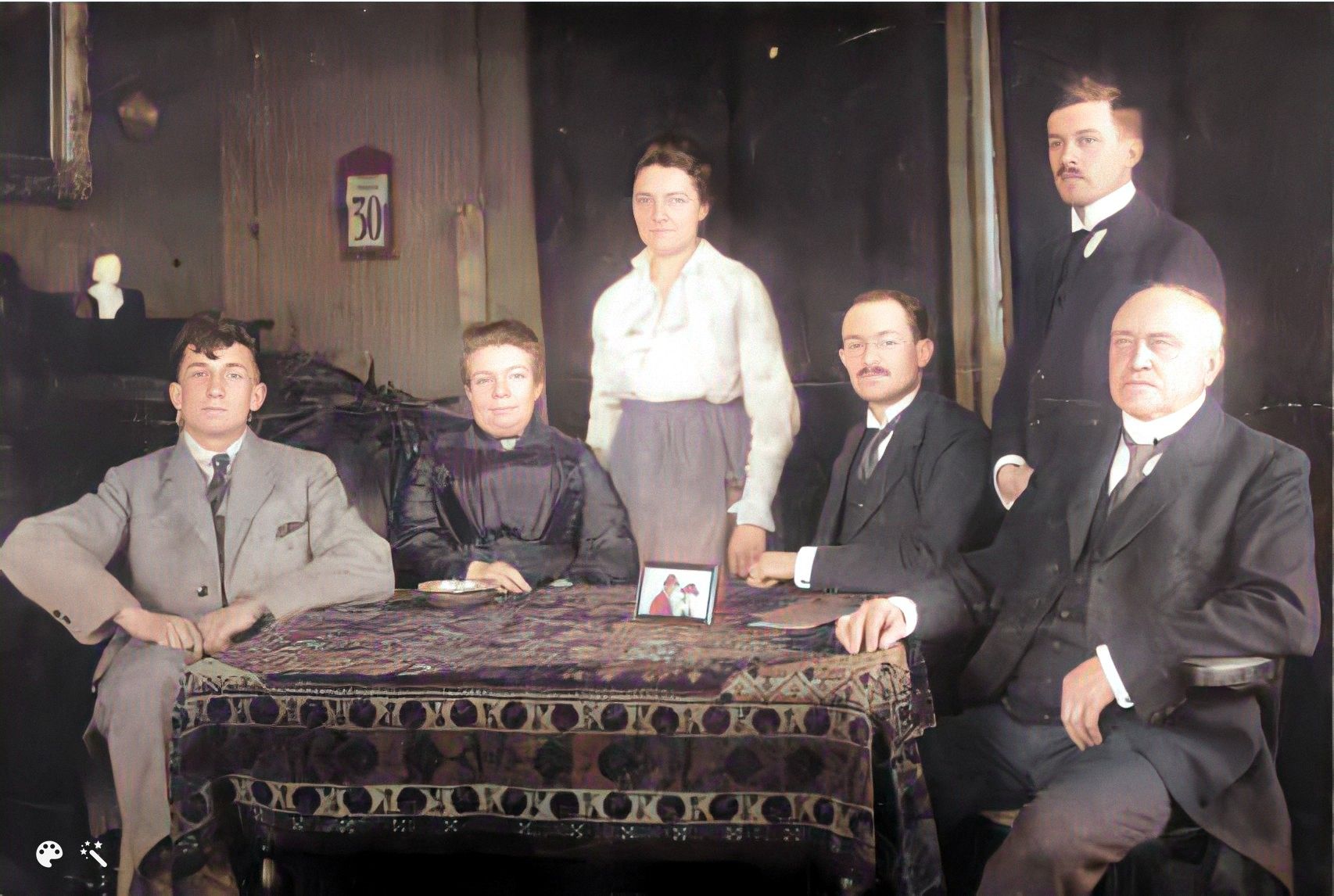 Johan Rudolf Katz (1880-1938); Marie Katz-Geesink; Frida Katz (1885-1963); Mathilde Hugenholtz-Geesink (1865-1941); JBT Hugenholtz (1859-1922); oma Geesink-Reuver (1824-1917); Karel Fredrik Katz (1883-1942).